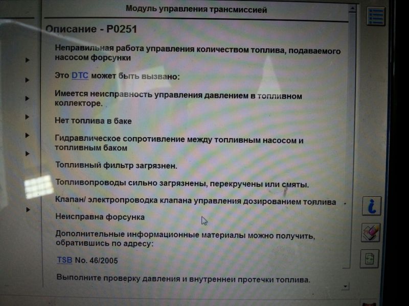 Номер ошибки P0251 в Форд Транзит 6