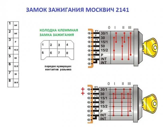 Как подключить замок зажигания от Газели на Москвич 2141?