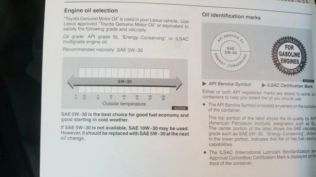 Мануал требует лить в 3mz-fe, 5w30, sl, ilsac