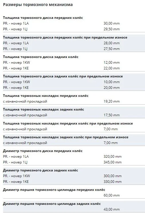 По ссылке выберите в самом низу ваш двигатель, в разделе тормозная система будут данные.