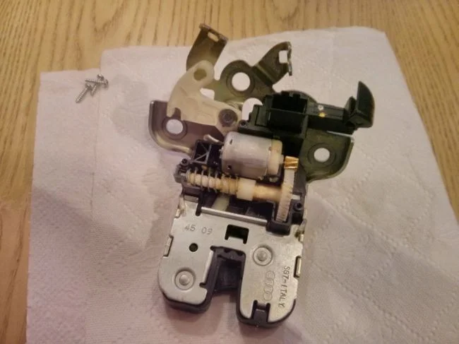 Как правильно установить пружину на крышку пластмассовую(находящуюся на нижней накладке), куда входит замок двери багажника?