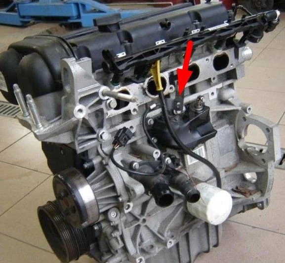 Где датчик детонации на двигателе 1.6 SHDA Форд Фокус 2?
