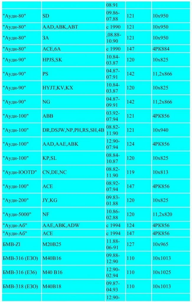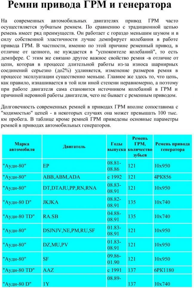 Сколько зубьев на ремне ГРМ Ауди 80 вз?