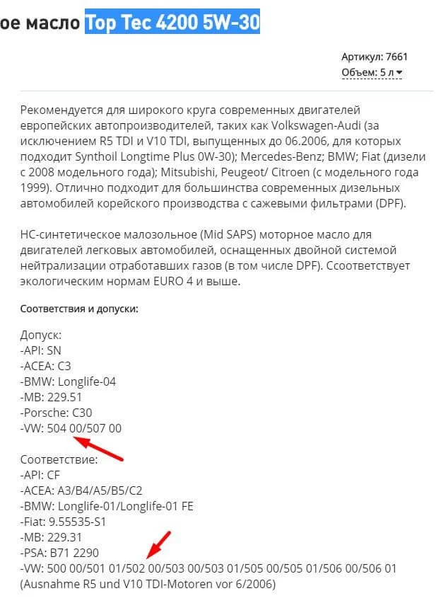 Лучше заливать с допуском VW 502 00, оригинальное масло G 052 167 M4. Добавил скриншот в первый ответ.