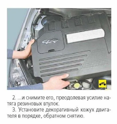 Как снять пластиковую панель с двигателя Чери Тигго?