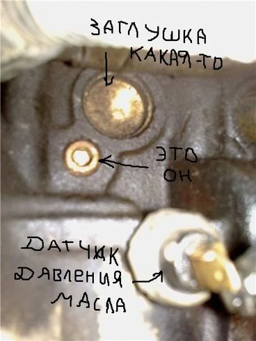 Посмотрите наличие пробки под впускным коллектором, но если она там есть, она может не открутиться, а если открутится, то есть вероятность, что отверстие будет забито.