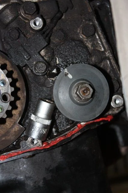 Подскажите, как открутить гайку что бы снять шестерню масляного насоса Митсубиши Галант, 1986, бензин, 2.4л. Хочу заменить сальник и никак не могу открутить.