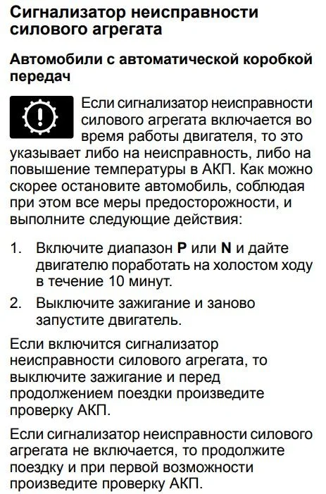 Восклицательный знак в шестерёнке? Неисправность КПП(подгорание АКПП) или систем силового агрегата. Надо смотреть ошибки сканером.