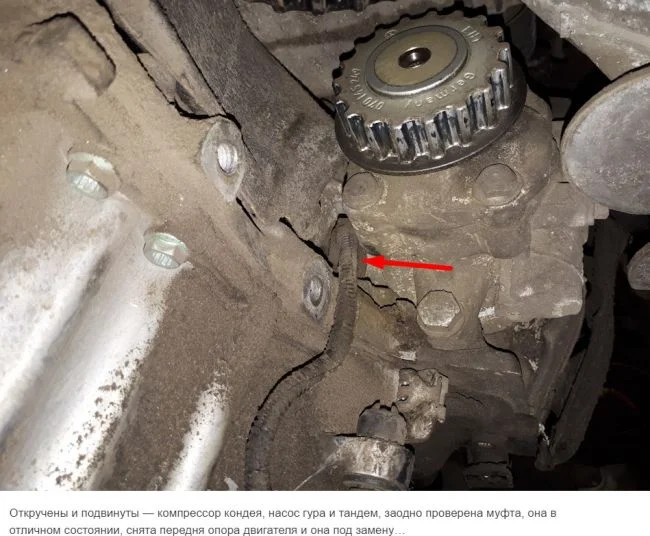 Что бы добраться до датчика коленвала, нужно отвести в сторону компрессор кондиционера, снять гидроусилитель, за ним находится датчик, указан стрелкой на фото. Проверьте еще разъем и провода до датчика положения коленвала.