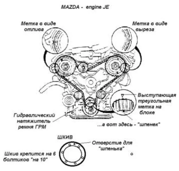 Двигатель JE бензиновый 3.0. Есть метки на распредвале?