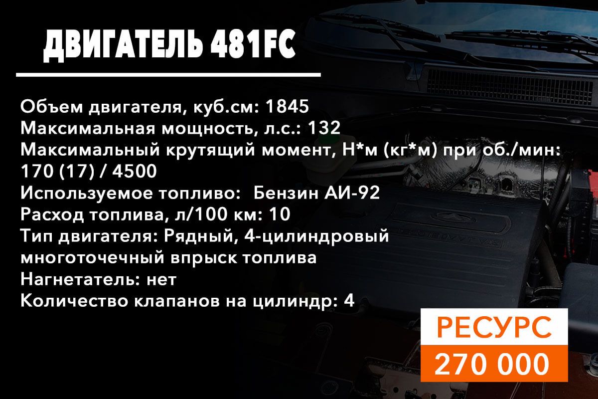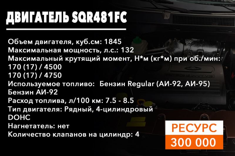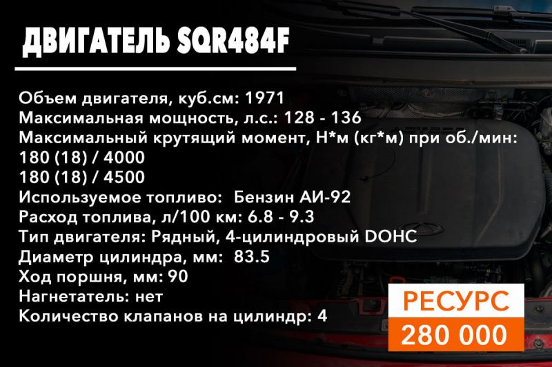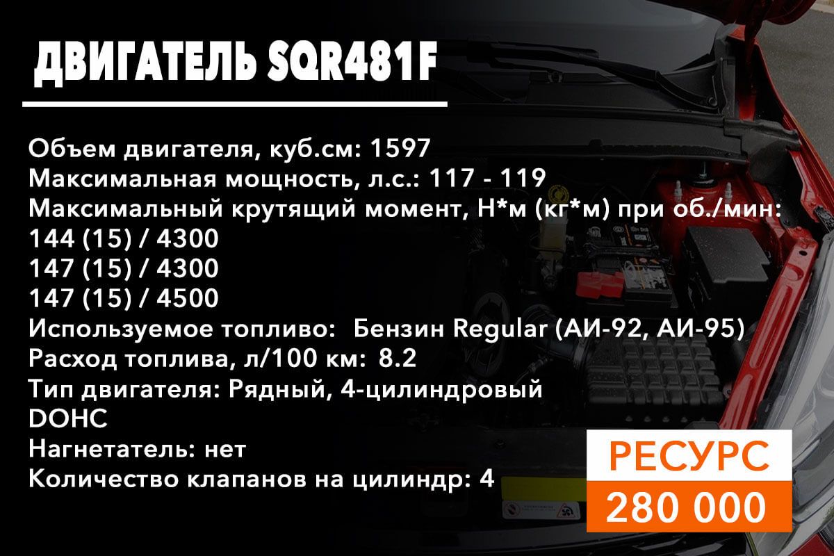 SQR481FC – силовой агрегат с рабочим объемом 1.8 литра на 132 лошадиные силы;