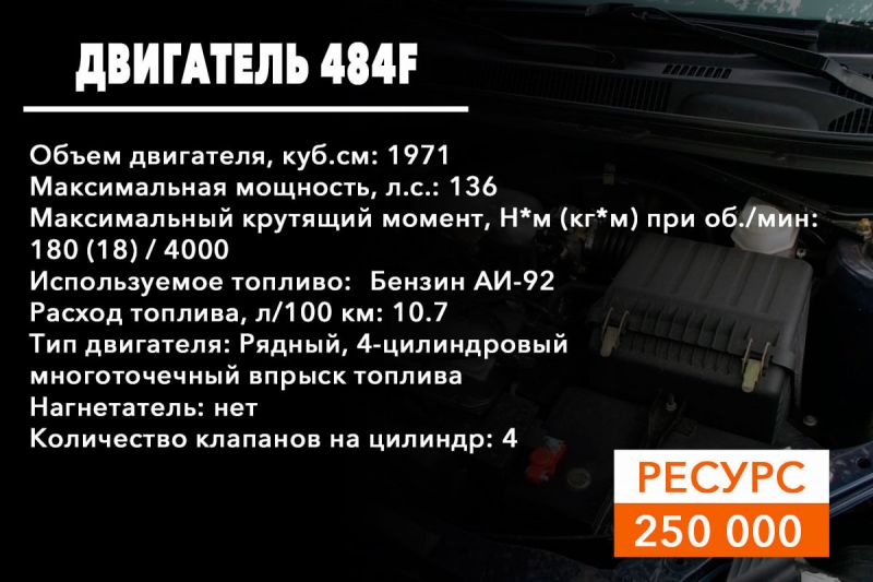SQR484F – бензиновый мотор на 136 л.с, устанавливается на полноприводные модификации автомобиля;