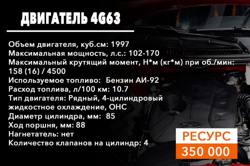 4G63 – 125-сильный движок с рабочим объемом 2.0 литра;