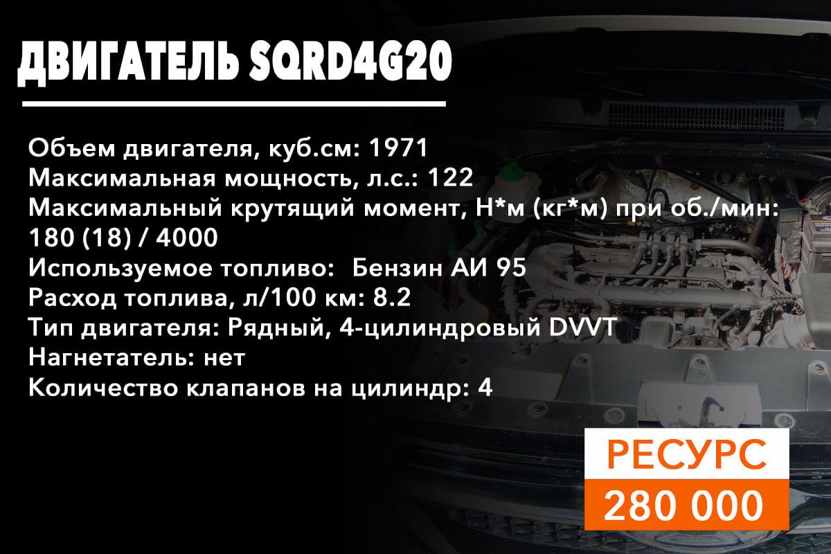 SQRD4G20 – двухлитровый 122-сильный силовой агрегат для Чери Тигго 4;