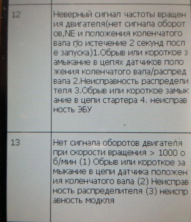 12и 13 ошибки имеют много значений. Может быть неисправность тахометра, а может быть неисправность бензонасоса. Всё зависит от диагностического разъёма и смотря какие выводы перемыкаете.