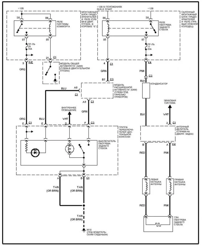 Все ранее найденные схемы подключения обогрева заднего стекла не подходят. Если есть возможность прислать схему и подсказать где искать причину неисправности, буду очень благодарен!