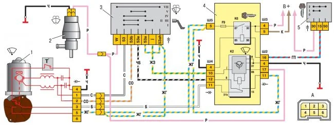 Пучок проводов от электродвигателя стеклоочистителей идет сначала в блок предохранителей, а уже после блока предохранителей на переключатель? 2112 16 кл. Нужно найти провод который отвечает за первое «прерывистое» положение стеклоочистителей. Хочу на этот провод подать плюс с АКБ для проверки