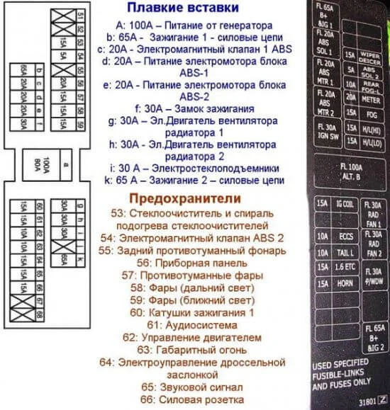 Вот одна из фотографий из первого ответа (100-амперная плавкая вставка в верхней части фото, это практически и есть предохранитель генератора, предохранитель зарядки)