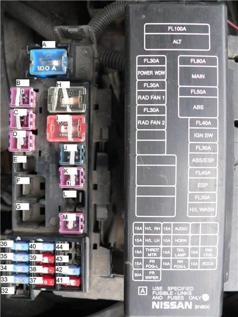 Где находится предохранитель зарядки Ниссан Примера