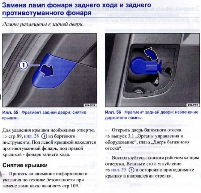 Как открыть лючок заднего фонаря на крышке багажника Туран 2?
