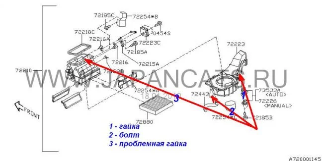Демонтаж моторчика печки в Subaru