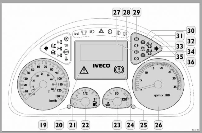Горит индикатор красный на приборе спидометра Ивеко ЕвроКарго 2