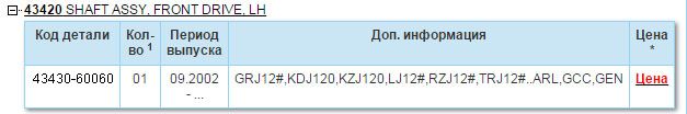 По каталогу, на ваш автомобиль Правый и Левый приводы идут под одним артикулом 43430-60060.