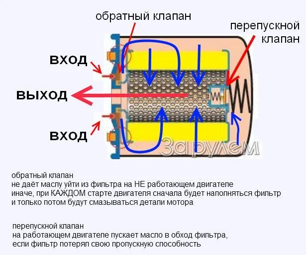 Пока фильтр чистый, пока он в состоянии пропускать масло и очищать его, то не откроется никакой перепускной канал. А если фильтр запачкался, забился, и не может фильтровать, не может пропускать масло, тогда не имея перепускного клапана (или выходе его из строя), в этом месте, в фильтре образуется пробка, циркуляции масла не будет, не будет поступления масла к трущимся поверхностям в головку блока и к шейкам колен/вала. На этом участке, от маслонасоса до фильтра создастся давление не менее 6-ти атмосфер (это то давление не которое рассчитан редукционный клапан в маслонасосе). Если не прорвёт прокладку фильтра, то создаваемое давление маслонасосом, будет просто сразу же сливаться в картер двигателя (берётся из картера… и сразу опять сливается).
