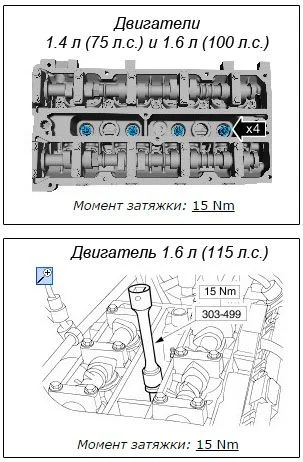 Болты крепления головки блока цилиндров (Использовать новые винты)
