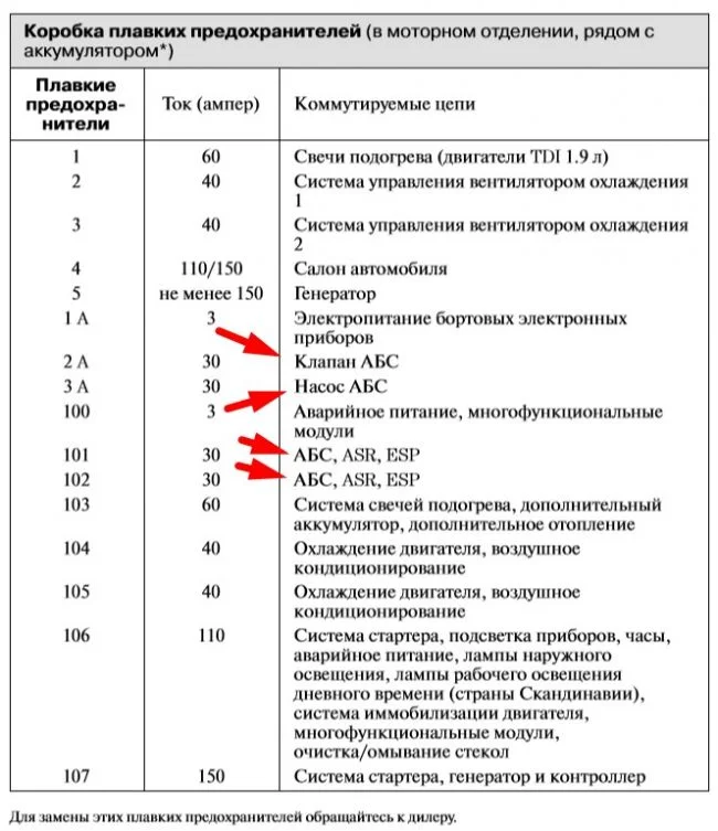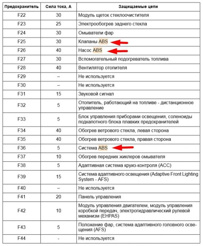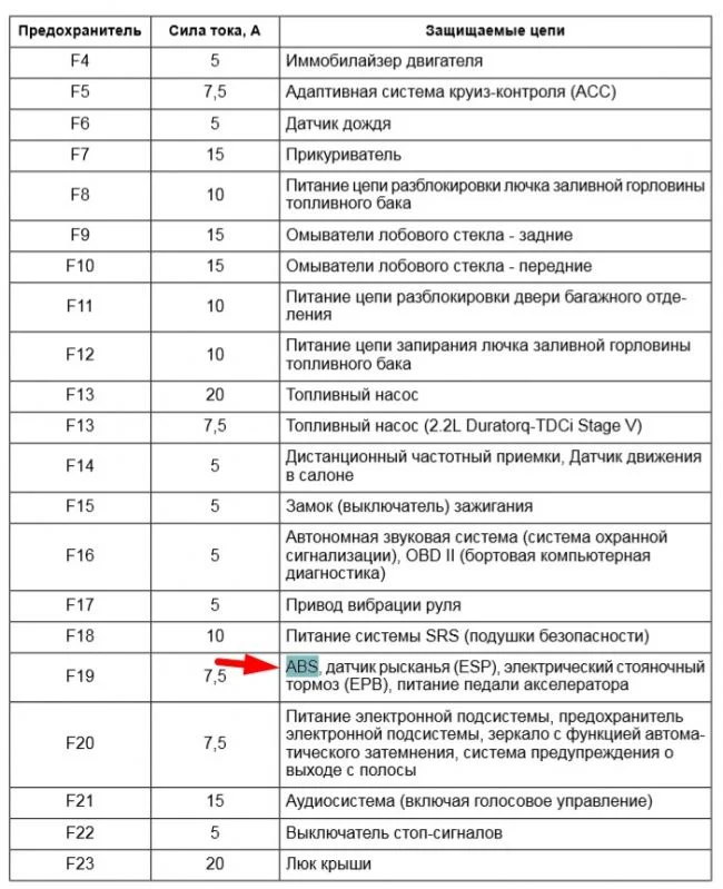 Где находится предохранитель ABS в Форд Галакси МК 2?