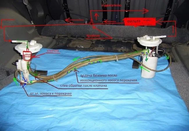 Топливный модуль с бензонасосом, вы найдёте в правом лючке по ходу автомобиля.