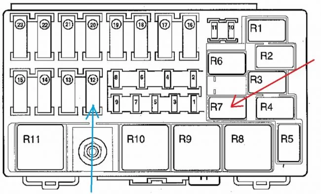 Синей стрелкой отметил предохранитель блока подогрева. Красной стрелкой отметил реле блока подогрева