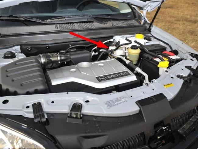 Где находится бачок с тормозной жидкостью в Опель Антара?