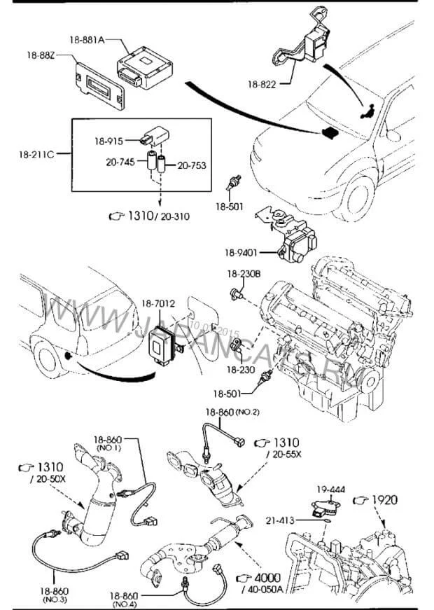 Mazda Tribute, 2005 года выпуска, двигатель AJ V, 3.0 литра. Подскажите пожалуйста, где находиться датчик давления масла на двигателе? Заранее Вам спасибо!