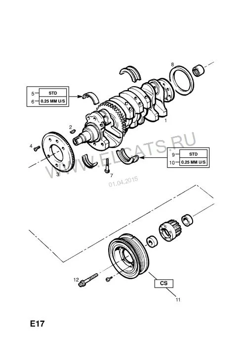 Вот ваш коленвал, между 1м и 2м цилиндрами на нем видим зубчатое колесо задающее сигнал для датчика коленвала. Значит датчик находится в его плоскости на блоке двигателя.