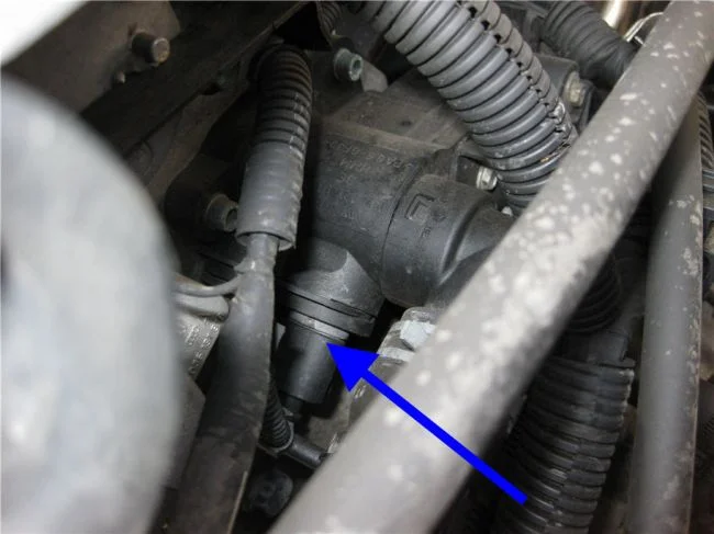 Где находится датчик температуры ОЖ в Фольксваген Поло 4?