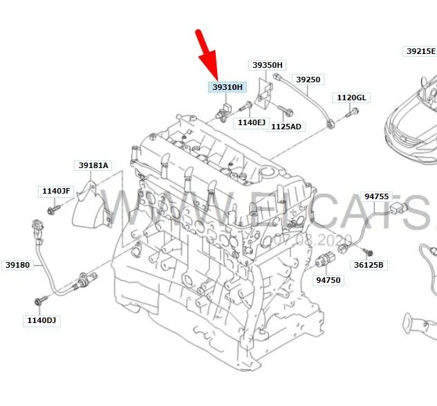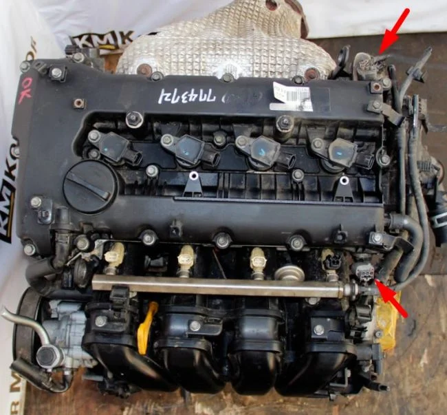 Датчик распредвала на схеме указан стрелкой Hyundai/Kia 39350-25010, указано, что их два.