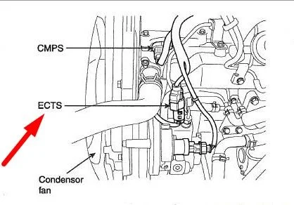 Где находится датчик температуры охлаждающей жидкости на двигателе D4CB? Спасибо