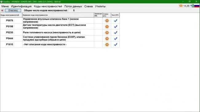 Всего ошибок 5 - Р0076, Р0198, Р0230, Р0444, Р1610. Обычным сканером считывали, но тут как такое дело, двигатель то не тот выбрали получается