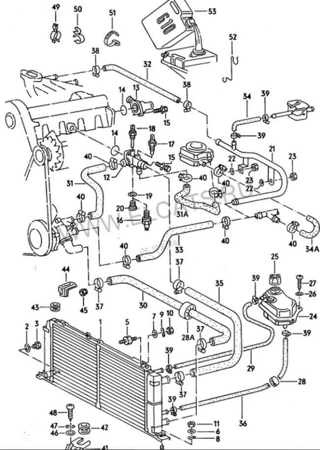 В 4-х цилиндровых двигателях NP, JW, PH, SH установлены следующие датчики температуры: