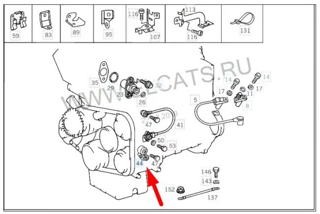 Датчик детонации A 003 153 89 28 указан на схеме, держится одним болтом.