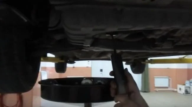 Кроме того сливная пробка картера смотрит в сторону и там образуется карман где остаётся приличное количество масла. Надо одеть на шприц загнутый шланг и откачать таким образом этот остаток. Иначе у вас при замене масла не зайдёт положенный заправочный объём в 3,3 литра.