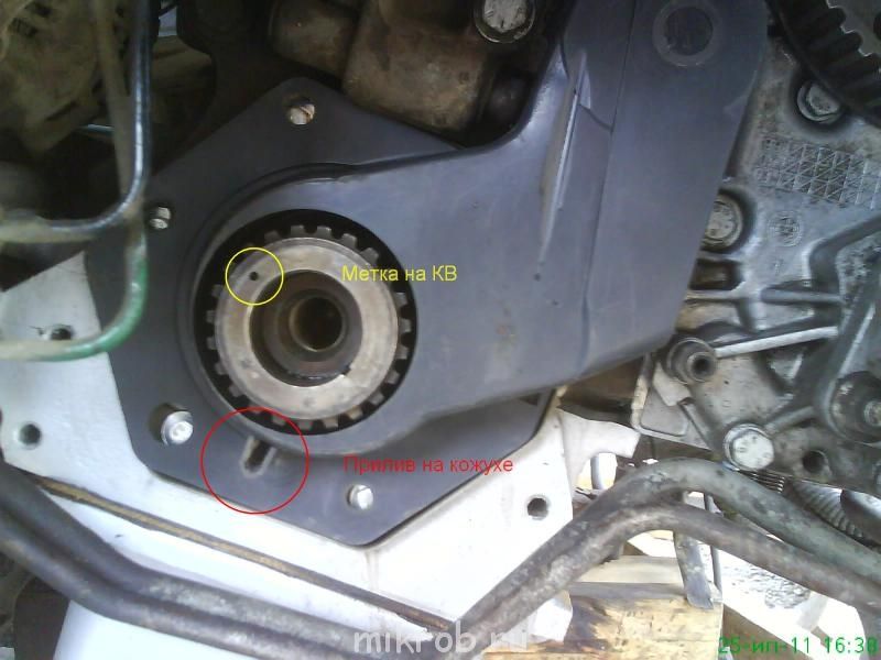 Где находится метка на коленвалу двигатель Ивеко Дейли 2.5, 8 клапанный дизель?