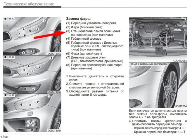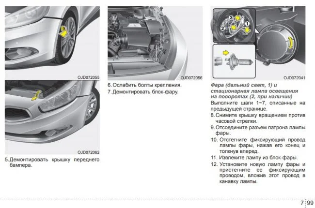 Как заменить правую лампу бокового света на CEED JD 2014?