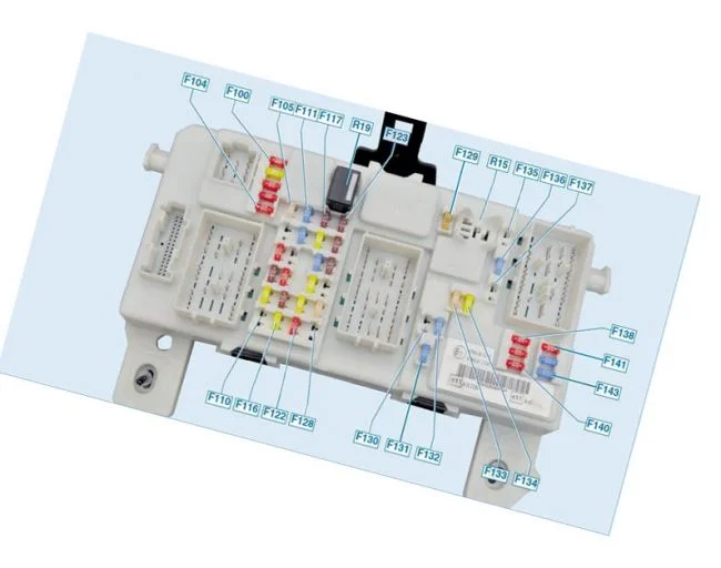 На рестайлинговом Фокусе реле также установлено в блоке салонном и отмечено как R19. Предохранитель на рисунке отмечен номером 111. Блок стоит также под бардачком за пластиковой панелью. Что бы открыть доступ надо верхний край панели потянуть на себя.