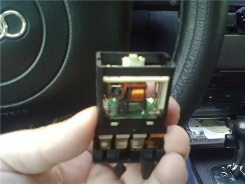 Потдеваем, отверткой потолще, саму кнопку-реле, и вытаскиваем её.