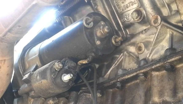 Стартер BMW E60 расположен под двигателем, соединен с его боковой частью длинными болтами.