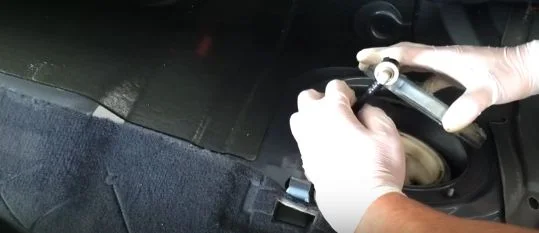 Топливный фильтр автомобиля БМВ Е60 расположен под задним сидением. Демонтировать все сиденье не обязательно. Достаточно будет снять лишь нижнюю часть дивана, без спинки.