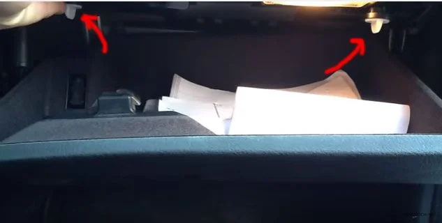 Предохранители на БМВ Х5 находятся в потолочном бардачке. После открытия бардачка, видим белые вращалки-фиксаторы.