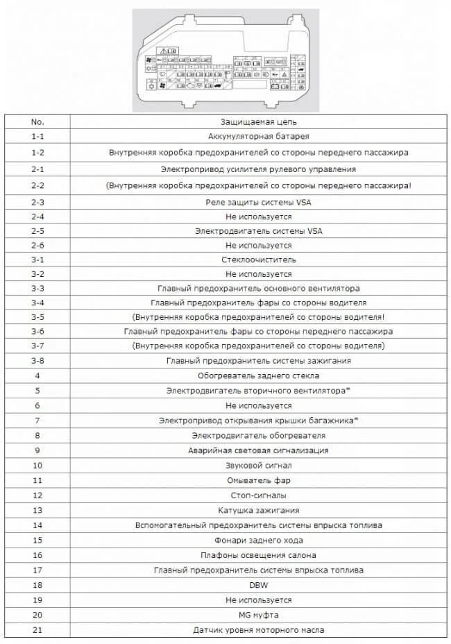 И ещё с внутренней стороны нарисована схема установки предохранителей.